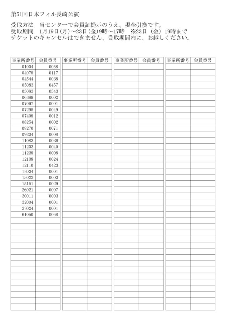 日本フィル長崎公演 当選者